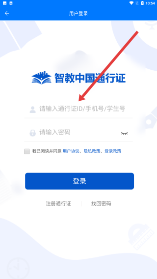 3、在智教中國通行證登錄頁面,輸入通行證ID、手機(jī)號(hào)或?qū)W生號(hào),以及對(duì)應(yīng)密碼,勾選協(xié)議后完成登錄操作。