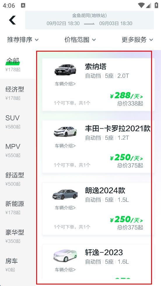 3、在車輛選擇頁面,瀏覽展示的車輛列表,挑選出自己想要預(yù)約的車型,查看車輛的價(jià)格、介紹等信息,以便確定預(yù)約的車輛。