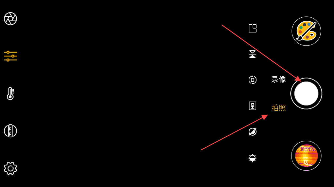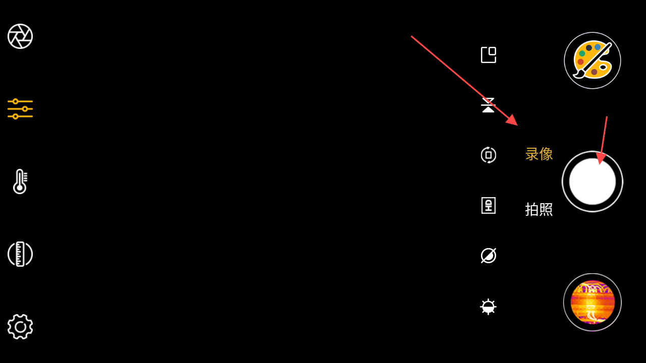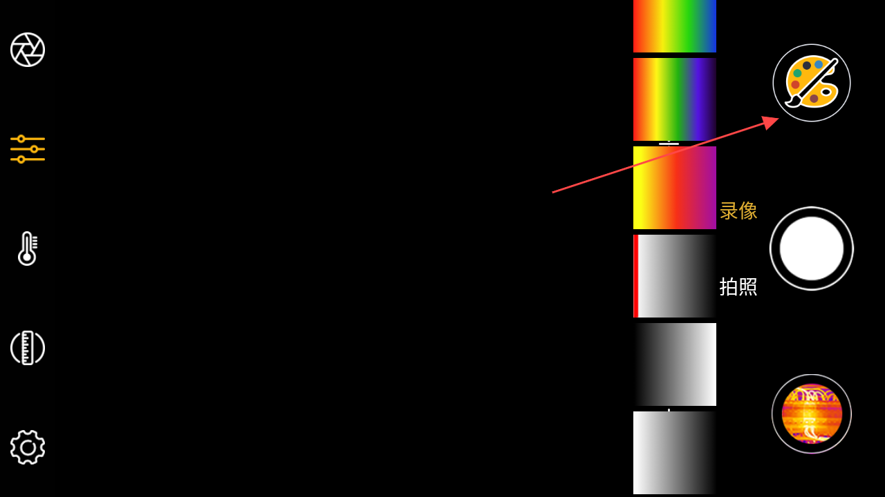 3、如果需要對拍攝的紅外圖像進行色彩等方面調(diào)整,點擊界面右下角類似調(diào)色盤的圖標,進入圖像色彩等參數(shù)的調(diào)整界面,根據(jù)實際需求對圖像進行優(yōu)化處理。