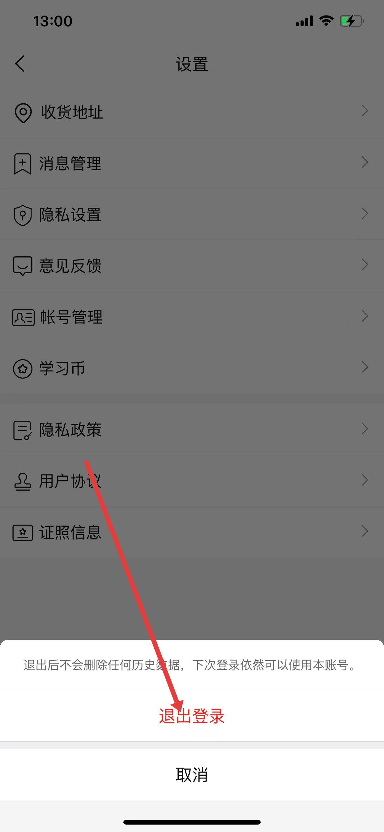 3、進入設置頁面后,找到并點擊最下方的退出登錄選項。