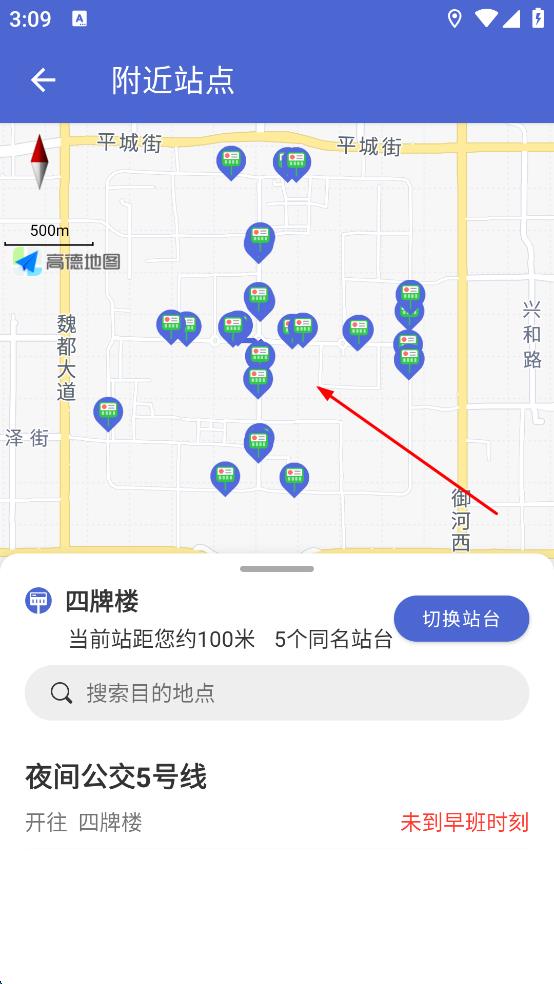 3、進(jìn)入附近站點(diǎn)地圖界面,地圖上顯示多個(gè)站點(diǎn)標(biāo)識(shí),可直觀查看站點(diǎn)分布及距離,輔助規(guī)劃出行 。
