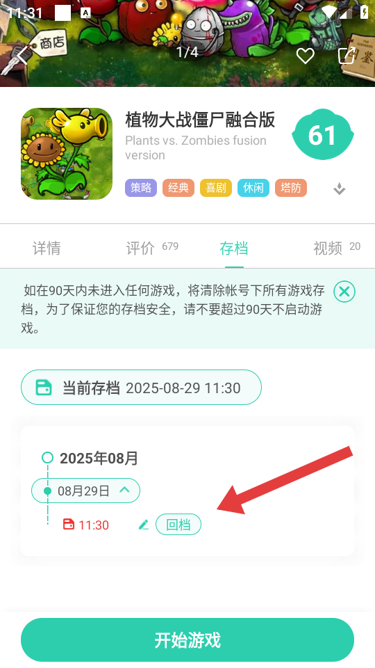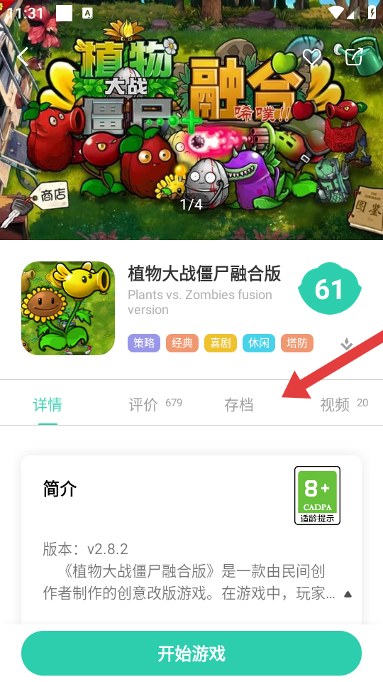 2、在這個(gè)游戲的詳情頁(yè)中,我們需要點(diǎn)擊存檔的標(biāo)簽,進(jìn)入游戲存檔管理的界面。