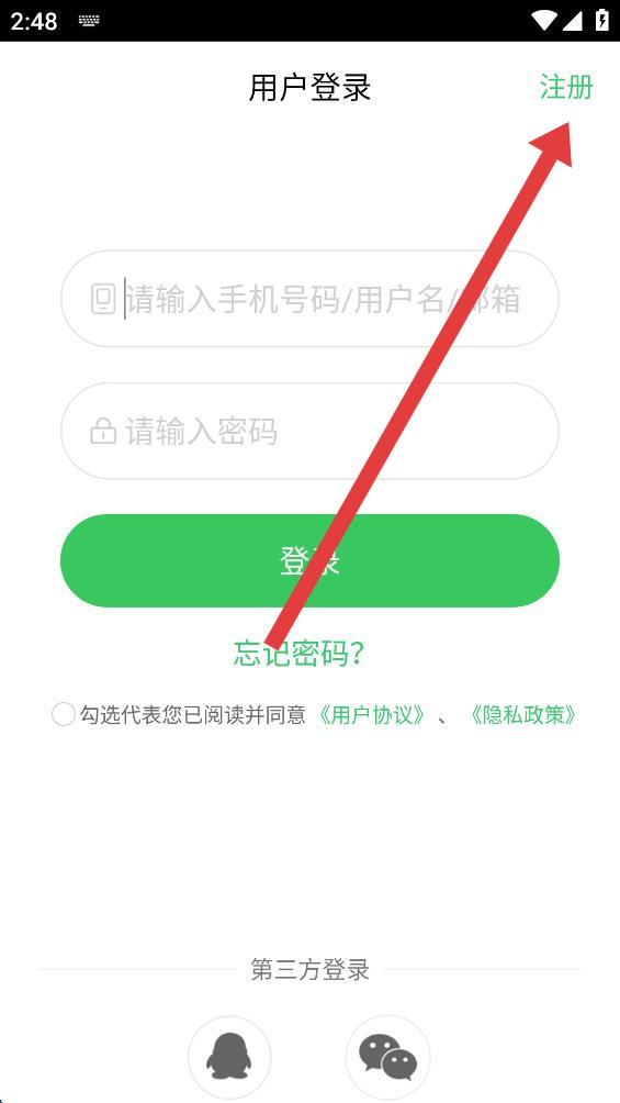 1、在登錄界面中點擊右上角的注冊選項,進入賬號注冊界面。