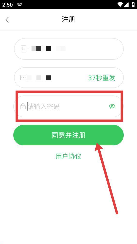3、在輸入框中設(shè)置登錄密碼,完成后點擊同意并注冊按鈕。