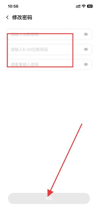4、根據(jù)要求輸入密碼,點擊完成即可完成密碼修改。