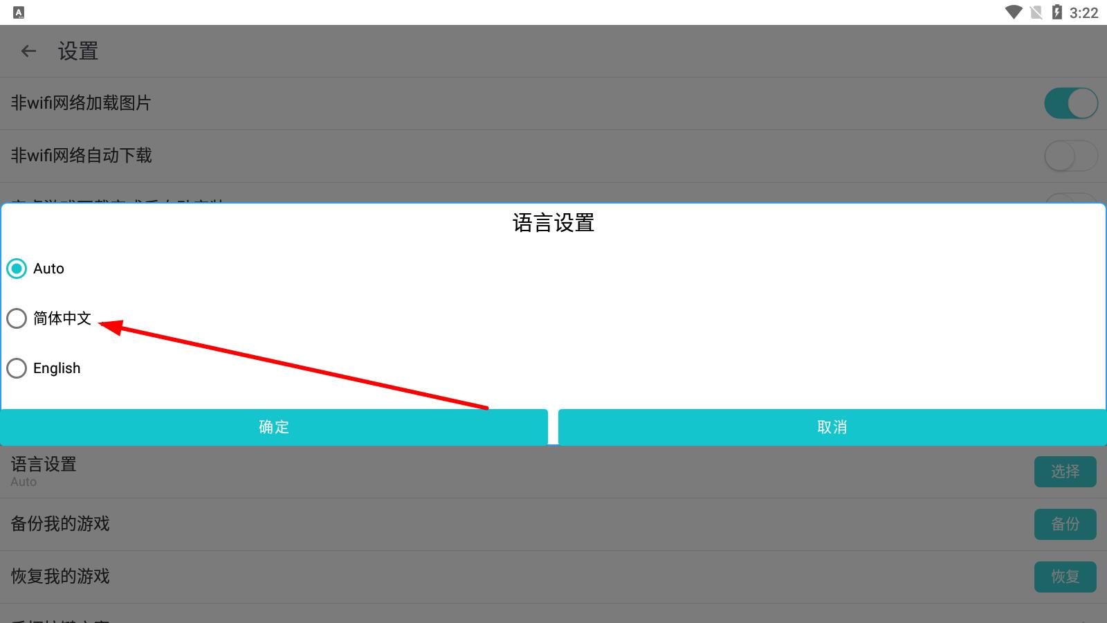 4、在彈出的語(yǔ)言設(shè)置窗口中,選擇簡(jiǎn)體中文,然后點(diǎn)擊確定即可完成設(shè)置。