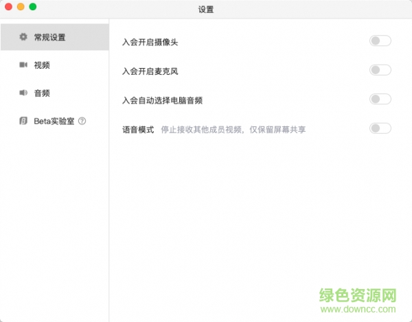 點擊該按鈕,即可喚出設(shè)置窗口,您可以在該窗口進行設(shè)備信息檢測,查看您的攝像頭.麥克風(fēng).揚聲器是否被識別,同時可進入Beta實驗室,體驗最新黑科技