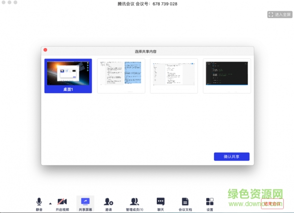 (1) 點擊會議面板工具欄上的“共享屏幕”按鈕