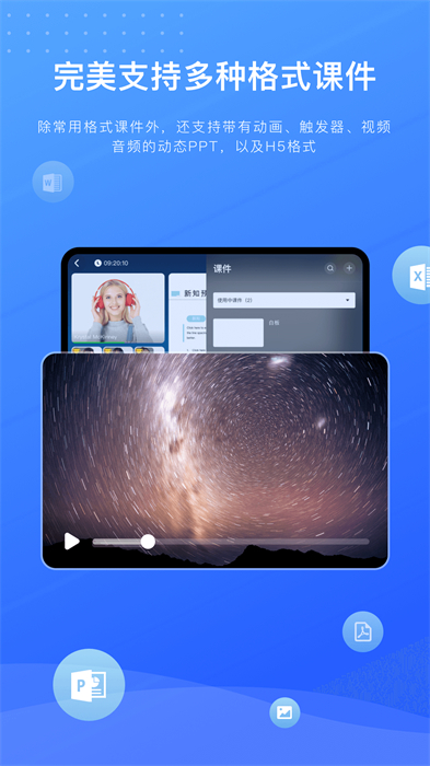 支持復雜PPT動畫功能,可以在直播過程中播放PPT動畫及音視頻文件。
