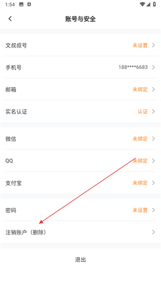 2、在賬號(hào)與安全頁(yè)面,點(diǎn)擊注銷(xiāo)賬戶(hù)選項(xiàng),進(jìn)入注銷(xiāo)賬戶(hù)風(fēng)險(xiǎn)提示頁(yè)面。