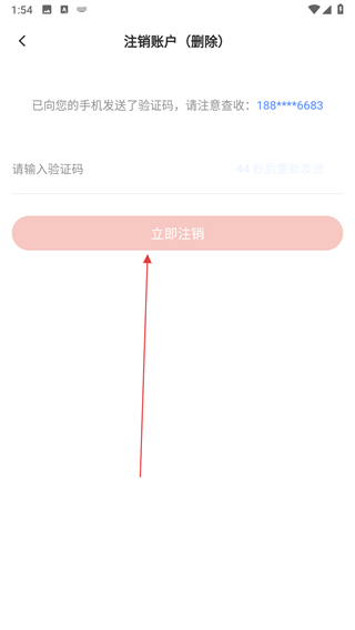 5、獲取驗(yàn)證碼后輸入,再點(diǎn)擊立即注銷(xiāo)按鈕,完成賬號(hào)注銷(xiāo)。