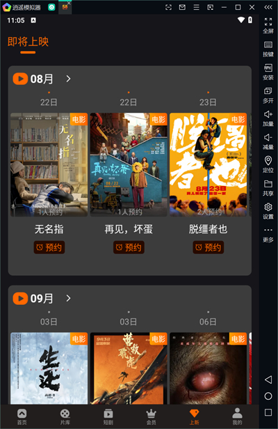4、點(diǎn)擊上映選項(xiàng)可以查看即將上映的影視大片,可以點(diǎn)擊影片查看詳情。