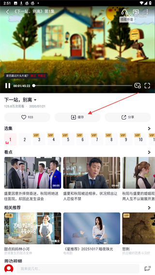 3、進(jìn)入播放的頁面內(nèi),用戶需點擊畫面下緩存的功能按鈕。