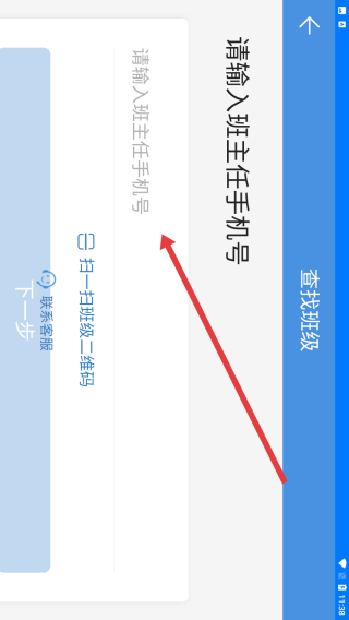 3、進(jìn)入查找班級(jí)頁(yè)面,在輸入框填寫(xiě)班主任手機(jī)號(hào),也可掃碼或聯(lián)系客服,逐步完成注冊(cè)賬號(hào)流程。