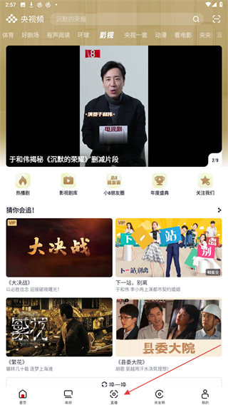 1、啟動央視頻的應(yīng)用APP,在首頁下方點擊直播的圖標。