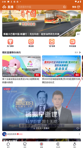 2、進入直播的頁面內(nèi),選擇并點擊你要觀看的直播內(nèi)容。