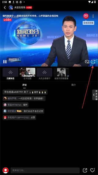 3、在電視直播的界面內(nèi),可點擊畫面中全屏播放的按鈕。