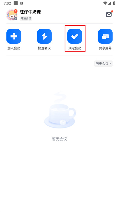 1、進入應用之后,需要點擊【預定會議】按鈕,以進行預定會議界面的進入;