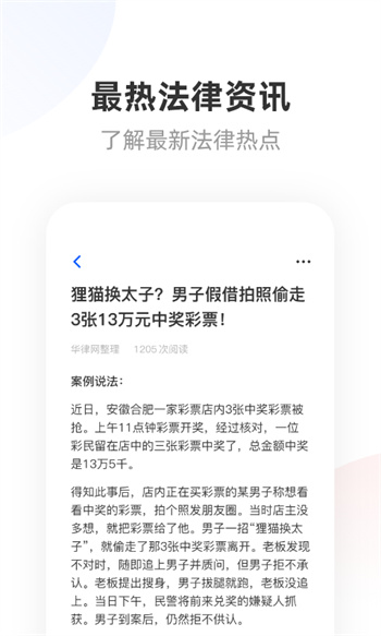 2、法律常識(shí)海量的法律知識(shí),在線檢索和查閱,幫助您快速查詢并解答。