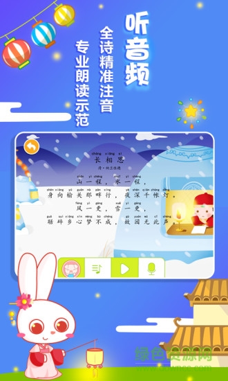 全新的交互、有趣的配音、可以跟全國(guó)小朋友一起共同分享讀古詩(shī)的樂(lè)趣。