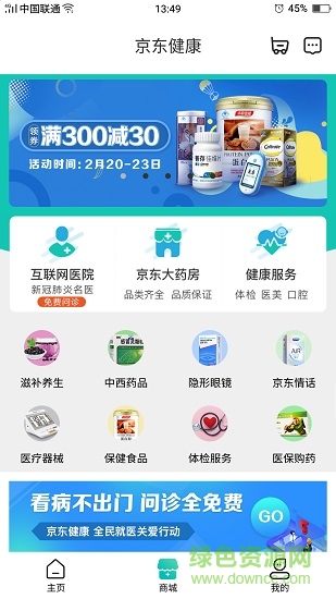 京東健康app是一款集口罩預約、尋醫(yī)問診、網(wǎng)上購藥等服務功能于一體的健康管理軟件,由京東官方打造,為用戶提供了貼心的健康資訊閱讀、疾病咨詢服務!讓您足不出戶輕松享受網(wǎng)上就醫(yī)服務。在這里可以購買到一些在市面上流通的常規(guī)藥品,在家就能解決購藥需求,同時還提供了其它人性化的醫(yī)療服務,例如線上問診,還有其它便民服務有需要的用戶可以來了解更多,歡迎在綠色資源網(wǎng)安裝使用。