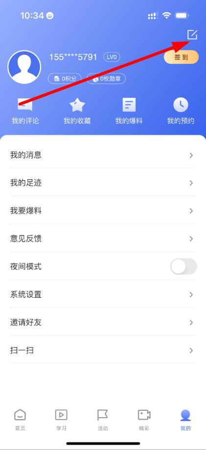 1、打開長(zhǎng)安書院app,在我的頁(yè)面中找到個(gè)人頁(yè)面右上角點(diǎn)擊編輯圖標(biāo)。