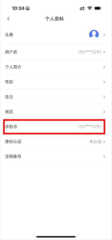 2、進(jìn)入個(gè)人資料頁(yè)面,在個(gè)人資料頁(yè)面中找到手機(jī)號(hào)選項(xiàng)并點(diǎn)擊。