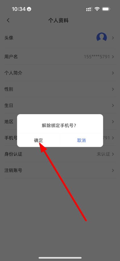 3、在彈出的解除綁定手機(jī)號(hào)確認(rèn)框中點(diǎn)擊確定。