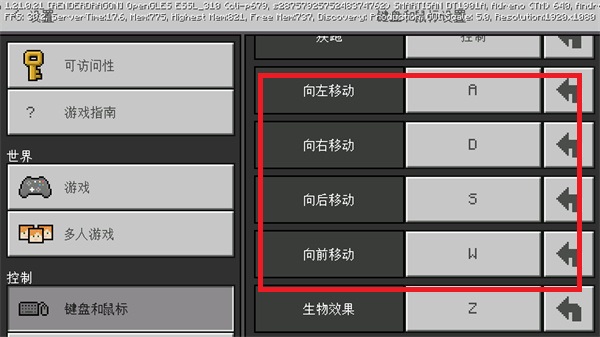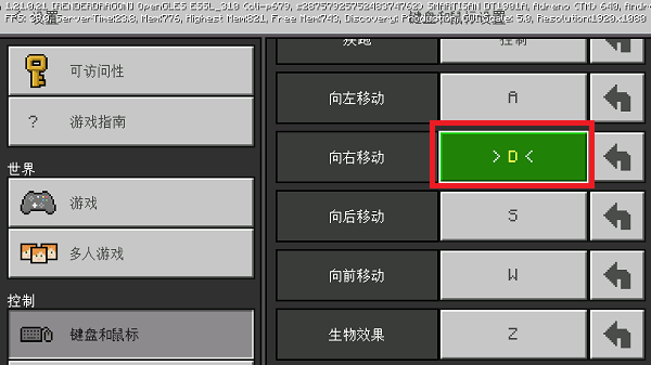 4、在該功能界面中下翻,就可以找到【移動(dòng)控制鍵】去進(jìn)行更改;