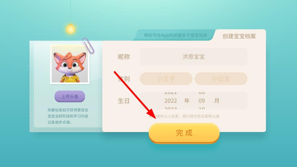 4、填寫第二個寶寶的昵稱、性別、生日等信息后,點擊完成按鈕,即可成功設(shè)置兩個寶寶。