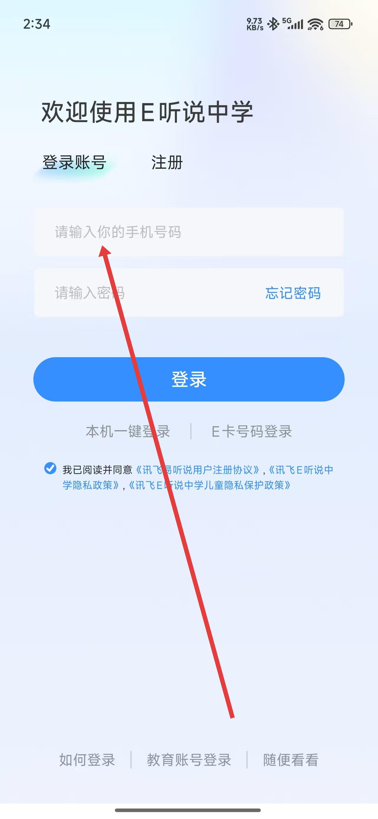 3、登錄頁(yè)面點(diǎn)擊手機(jī)號(hào)/學(xué)工號(hào)輸入框,激活輸入狀態(tài),準(zhǔn)備填寫賬號(hào)信息以完成登錄。