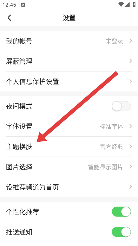 3、在設(shè)置的界面,需要點(diǎn)擊主題換膚,進(jìn)入主題換膚的界面。