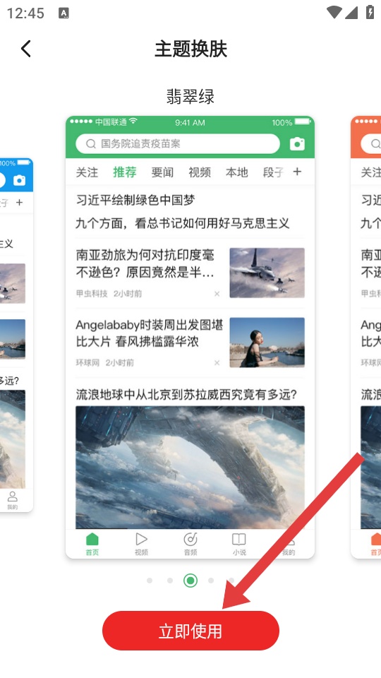4、在界面選擇喜歡的主題后,點(diǎn)擊立即使用,即可完成設(shè)置。