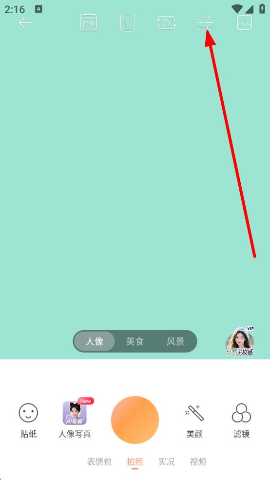 1、打開無他相機(jī)進(jìn)入拍照界面,點(diǎn)擊屏幕上方像三條橫線疊加的設(shè)置按鈕,進(jìn)入拍攝設(shè)置頁面。