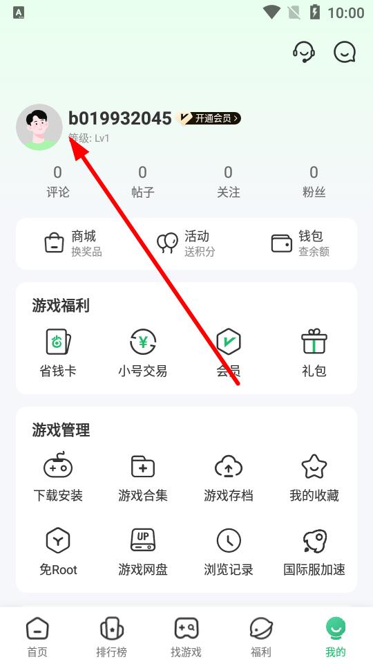 1、打開7723游戲盒APP,點擊右下角我的,進入個人中心頁面,點擊頭像區(qū)域進入個人資料頁面。
