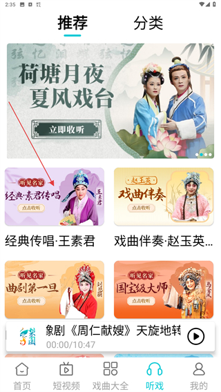 2、進(jìn)入推薦的頁面內(nèi),選擇并點(diǎn)擊要播放的戲曲封面。