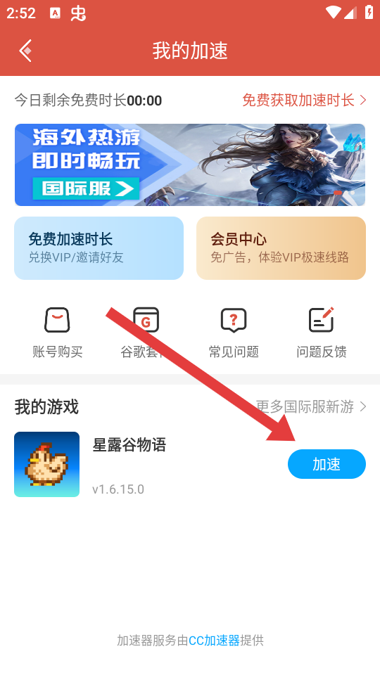 2、在我的游戲板塊中找到目標(biāo)游戲如星露谷物語,點(diǎn)擊游戲右側(cè)藍(lán)色加速的按鈕。