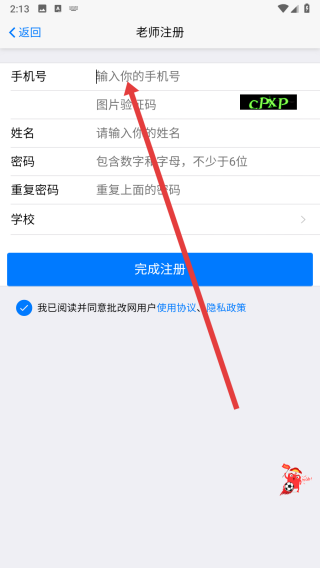 4、在跳轉(zhuǎn)到老師注冊(cè)頁面后,點(diǎn)擊輸入框填按順序?qū)懴鄳?yīng)的信息后,即可完成注冊(cè)操作。