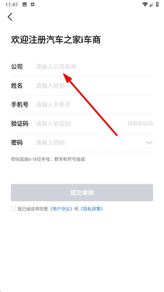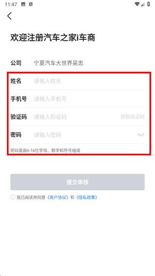 4、勾選我已閱讀并同意用戶協(xié)議和隱私政策,點(diǎn)擊提交審核,待審核通過后即可激活賬號。
