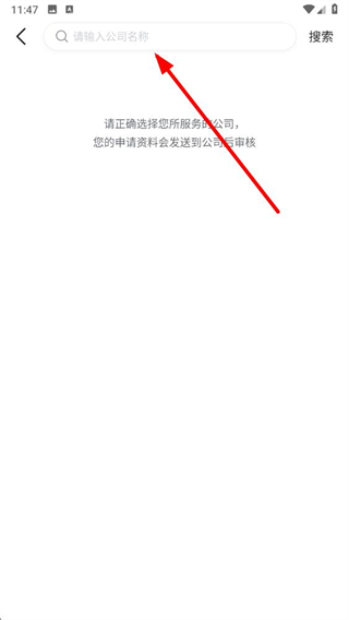 2、在注冊頁面中,點(diǎn)擊公司輸入框,搜索并選擇所屬公司。