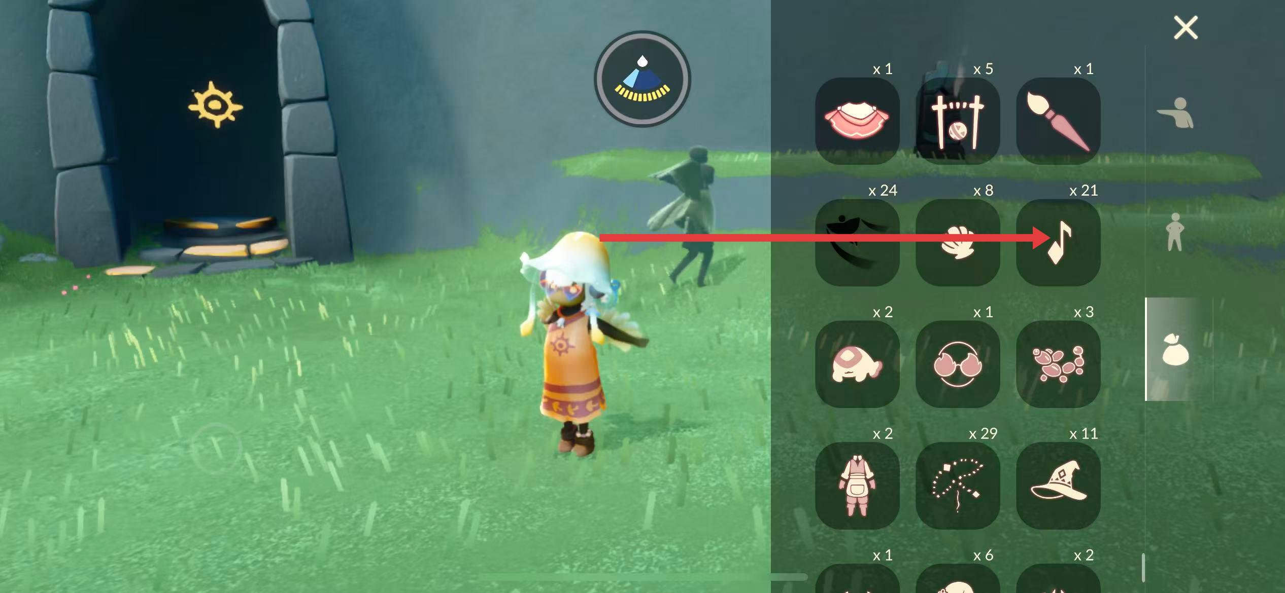 3、在背包中找到音符形狀的音樂魔法道具并點擊。
