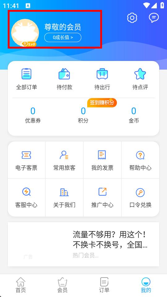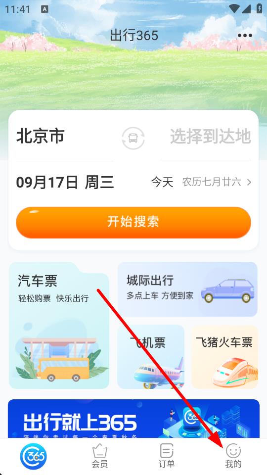 1、打開出行365App,點(diǎn)擊首頁下方導(dǎo)航欄中的我的進(jìn)入個(gè)人中心頁面。