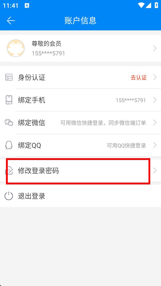 3、在賬戶信息界面中,找到修改登錄密碼選項(xiàng)并點(diǎn)擊進(jìn)入修改密碼頁面。