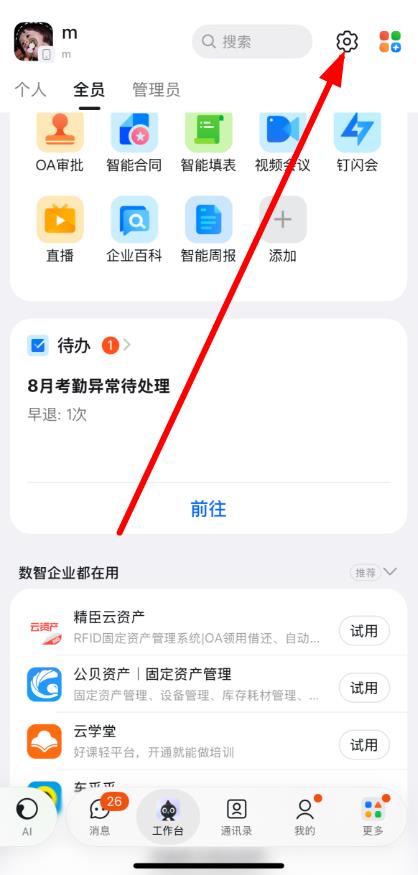 2、在工作臺(tái)頁(yè)面右上角,點(diǎn)擊齒輪狀的設(shè)置圖標(biāo)進(jìn)入工作臺(tái)管理界面。