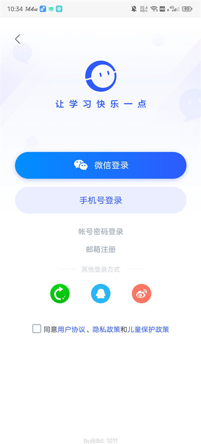 2、進入注冊登錄界面后,選擇自己想要使用的登錄方式,支持微信、手機號、賬號密碼、qq、郵箱等多種登錄方式;