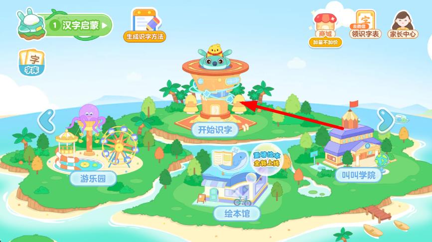 1、打開叫叫識字應(yīng)用,進(jìn)入主界面,點擊開始識字按鈕,開啟識字之旅。