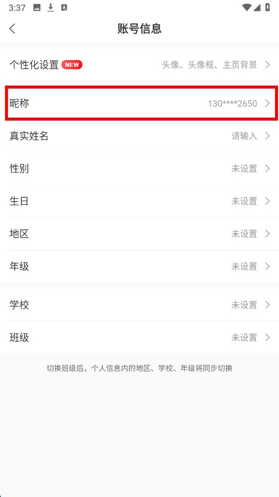 3、進入賬號信息頁面后點擊昵稱選項,在輸入框中輸入新名字確認修改即可。
