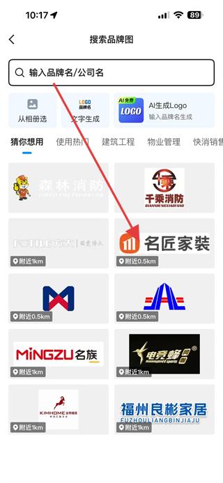 3.可在搜索品牌圖界面中輸入品牌名/公司名搜索,或選擇已有品牌圖。