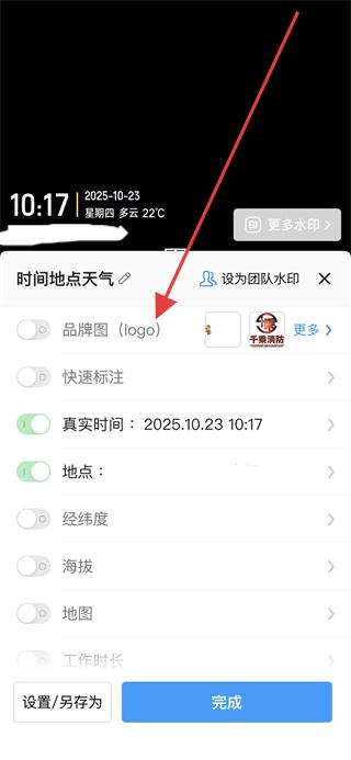 2.在水印設(shè)置界面中,點(diǎn)擊品牌圖logo選項(xiàng)。