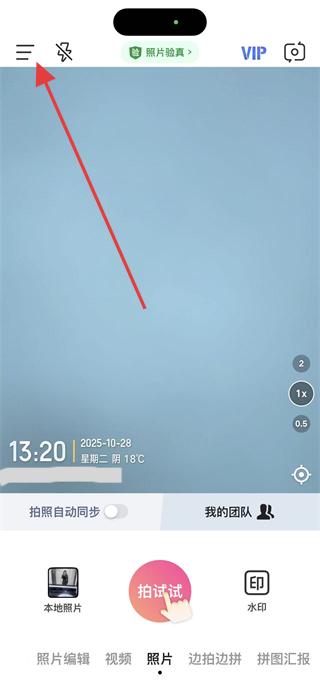 1、打開今日水印相機(jī)應(yīng)用,點(diǎn)擊左上角的三條橫線圖標(biāo)。